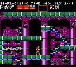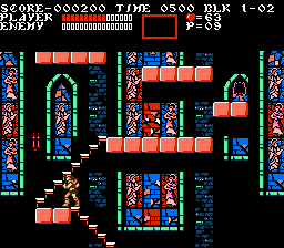 Castlevania III: Dracula's Curse is a side-scrolling platform game. The gameplay is nearly identical to the first Castlevania game. The player takes the role of Trevor Belmont who is able to move left and right, jump, attack with his whip straight ahead and use a special weapon. These special weapons consume hearts, which can be found by defeating monsters or destroying candles. Power-ups include: a throwing dagger, a throwing axe, A time-stopping stopwatch, a cross-shaped boomerang and a vial of holy water. Additionally there is a double shot (II) and triple shot (III) power-up which increases the number of special weapons that can be used at one time. Trevor is defeated if his life meter runs out, and can find a roast turkey power-up to replenish it. Trevor progresses through each level defeating monsters and eventually encountering a boss creature. At different points in the game the player will be able to chose between different paths, which will determine which levels are played.