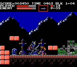 Castlevania III: Dracula's Curse is a side-scrolling platform game. The gameplay is nearly identical to the first Castlevania game. The player takes the role of Trevor Belmont who is able to move left and right, jump, attack with his whip straight ahead and use a special weapon. These special weapons consume hearts, which can be found by defeating monsters or destroying candles. Power-ups include: a throwing dagger, a throwing axe, A time-stopping stopwatch, a cross-shaped boomerang and a vial of holy water. Additionally there is a double shot (II) and triple shot (III) power-up which increases the number of special weapons that can be used at one time. Trevor is defeated if his life meter runs out, and can find a roast turkey power-up to replenish it. Trevor progresses through each level defeating monsters and eventually encountering a boss creature. At different points in the game the player will be able to chose between different paths, which will determine which levels are played.