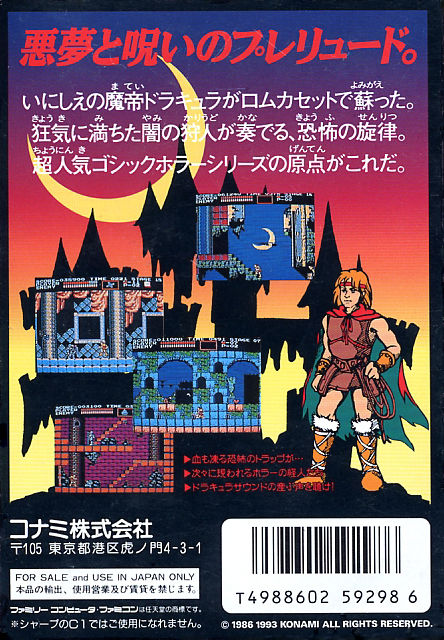 | __long_description | Every hundred years, the dark vampire known as Dracula resurrects and terrorizes the land. A vampire hunter named Simon Belmont bravely ventures into the Count's mansion in order to defeat him. Along the way he'll have to defeat skeletons, bats, fishmen, medusa heads and other evil creatures.