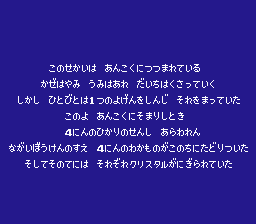 | __long_description | The world is veiled in darkness. Winds don't blow, the seas are stormy, and the earth rots. All people can hope for is that the ancient prophecy will be finally fulfilled. "When the world is veiled in darkness, four warriors will come..." And indeed, they come - the four characters you have previously chosen. Their first quest is to free a princess from the evil knight Garland, and then the real journey begins.