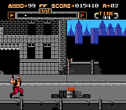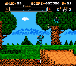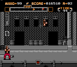 Gotcha! is a light gun paintball game that requires the Nintendo Zapper to play. In an unusual twist for NES light gun games, it also requires the player to use a regular control pad for character movement. Play consists of several stages full of enemies that all have to be shot in order to complete the stage. The player must use the D-pad on the controller to scroll the stage left and right, and shoot enemies with the zapper. This is one of the only light gun shooters to allow some form of player movement, but other than that is a pretty standard example of the genre.