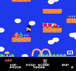 A sequel to the original Bubble Bobble title from Taito, featuring the now human Bub and Bob. It incorporated the use of Rainbows as both a weapon to defeat enemies and as a platform to climb the levels.