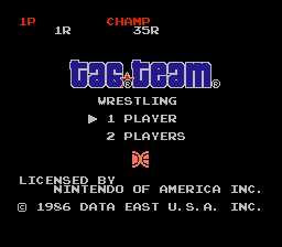 Tag Team Wrestling, known as Big Pro Wresling in Japan, is a wrestling game from Technos Japan and Data East. It originally appeared in arcades in 1983 and was later ported to the NES in 1986.