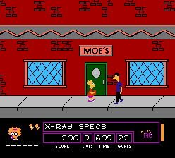 The ways Bart can get rid of those objects sought by the Space Mutants are numerous. For instance, in the first stage, Bart must get rid of purple objects. He can dye them red, cover them, wash them, etc. Some even involve a little puzzle solving, like playing a trick on Moe to make him get out of the bar.