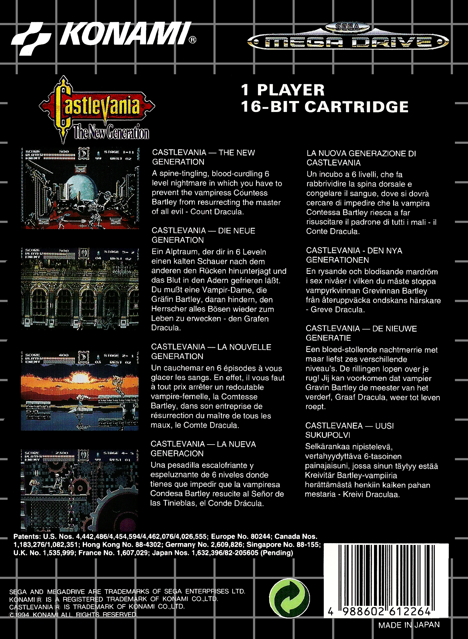 | x_name | Castlevania - The New Generation, MD, Europe, Mega Drive Mini, No-Intro |