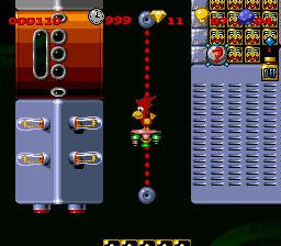 The gameplay follows the genre standards: Alfred walks through the 21 levels and needs to avoid enemies/obstacles by jumping over them. Every contact with enemies is deadly except when using Alfred's dive bomb attack. Occasionally there are simple switch puzzles to solve, mostly in order to find secret rooms with goodies. Examples for power-ups are hidden watering cans (collecting all unlocks a different ending), additional time, temporary invincibility or diamonds (100 reward an extra life). Balloons on the way act as restarting points after death. In some instances, the level ends with a boss fight. |