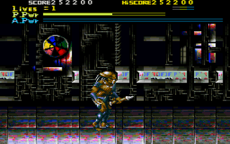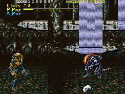 The predator will fight through several levels of alien creatures in a side scrolling manner. The predator's abilities includes attacking, jumping, sliding and firing bolts from it's shoulder cannon. Additionally, the shoulder cannon can be charged up to unleash a devastating attack that also harms the Predator. Most aliens will drop power-ups which include health, trophy skulls, a double edged throwing weapon, throwing spears and active camouflage. Boss aliens wait at the end of most levels.