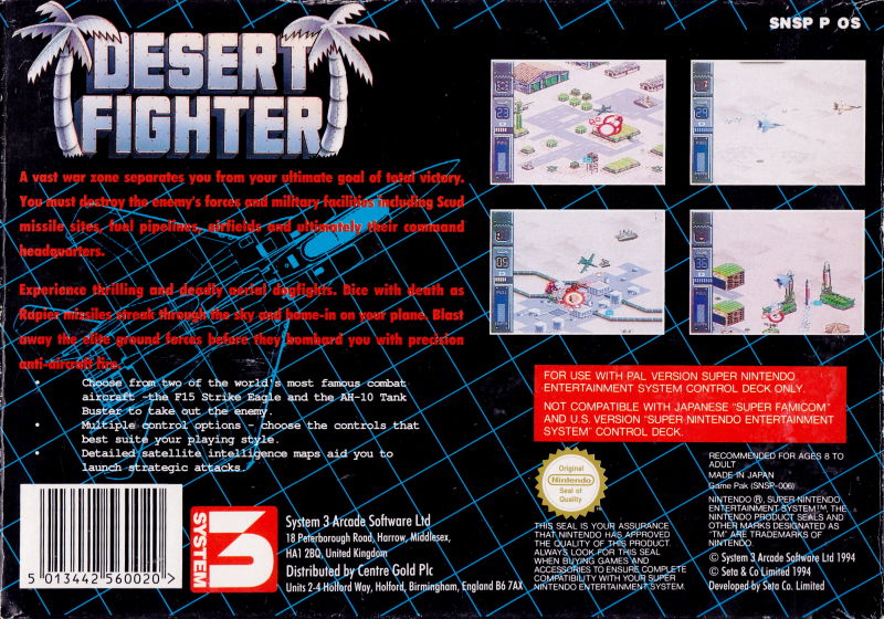 | description | Air Strike Patrol is an isometric, tactical jet fighter shoot 'em up developed by Opus for the SNES. It was released in Europe by System 3 Software, where it was known as Desert Fighter. |