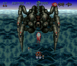 Horizontal and vertical scrolling shooter for the Super Nintendo, which seamlessly switches between the two modes.