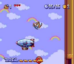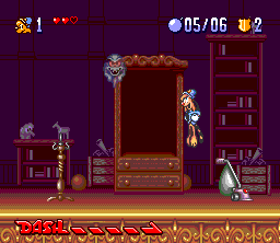 This is an action platform game. Bonkers can jump and dash, throwing enemies aside and even destroying some obstacles. Enemies can be killed by jumping on their heads. You can also collect various items such as bombs to throw at the enemies, cakes to refill your health, or hyper juice to make you dash continuously.