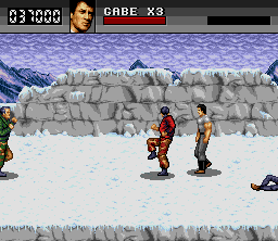 | __long_description | Standard side-scrolling beat'em up based off of the Stallone film of the same name. Sly must fight thugs and the elements as he tracks down suitcases of stolen cash dropped around the peaks of the Rockies. Combat follows the Final Fight standard, broken up by some mountain climbing and running (or 3-D snowboarding on the Sega CD) from avalanches.