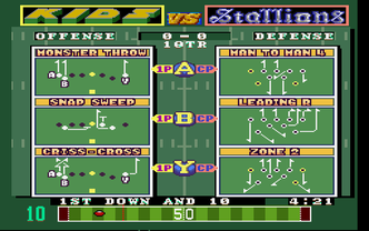 Gameplay involves the usual football fare of choosing a play and attempting to execute it. On offense, when throwing the football, a meter appears which measures the strength of the passer's throw. On defense, the player controls a defensive player and tries to tackle the opposing ball carrier or attempt to break up a pass play.