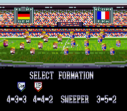 Before a soccer game starts, players get to choose a formation and set the game options. Options include turning on or off offsides, fouls, radar (a minimap showing where the players are positioned on the field), and whether to make the goal kick automatic or not. Players can also set the amount of time the each half of the game will last from as low as 1 minute to all the way up to 45 minutes.