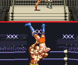 The game is divided into three different screens at times. The middle part shows the current action happening in the ring while the top and bottom parts of the screen are used for close-ups of action sequences such as power moves, illegal moves and finishing maneuvers.