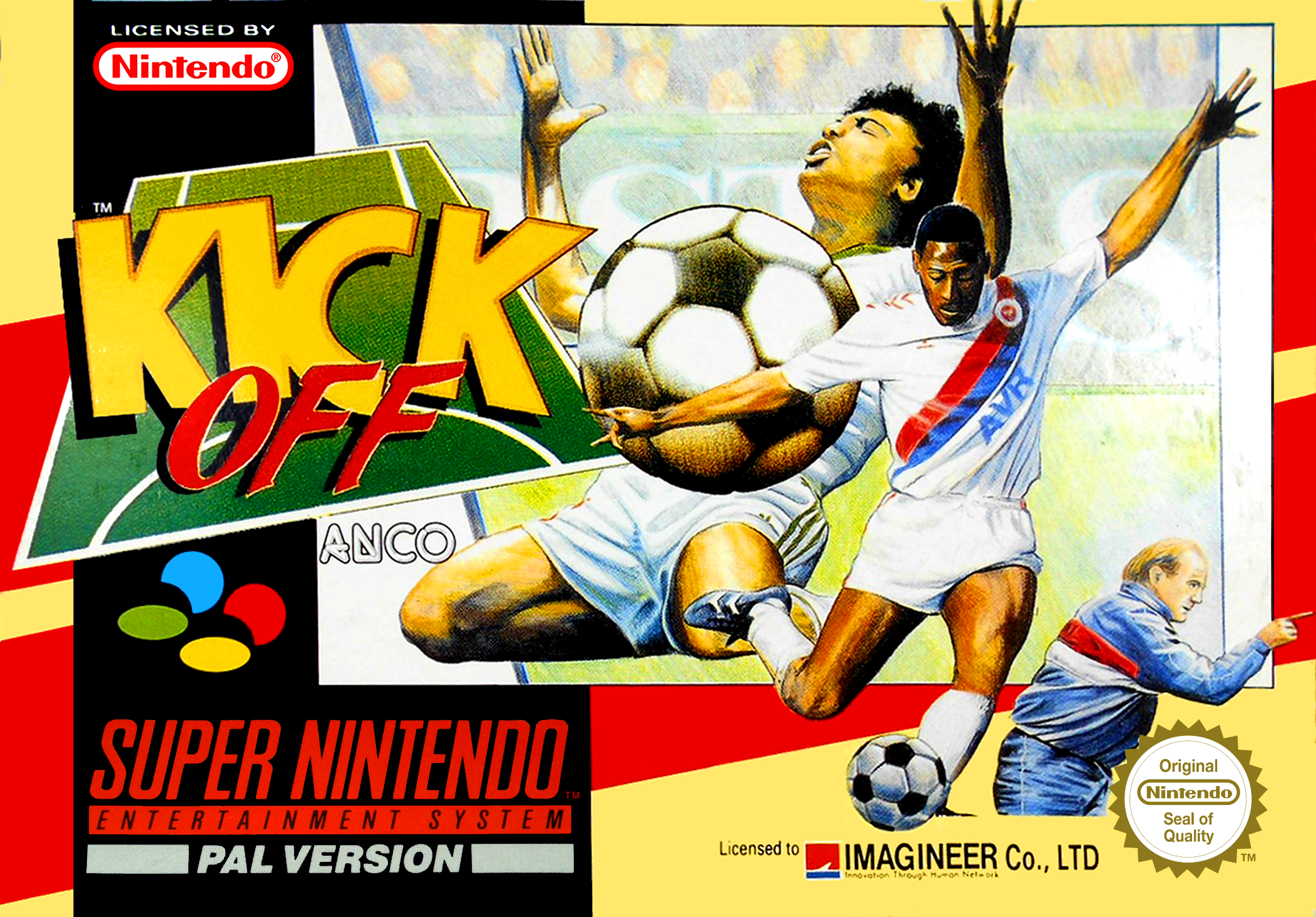 The game was not the first Kick Off game to be ported to the Super Nintendo. World League Soccer, released the previous year, was based on Kick Off 2. The European Super Nintendo release of Super Kick Off was renamed simply Kick Off, but is not to be confused with the series' 1989 originator. |