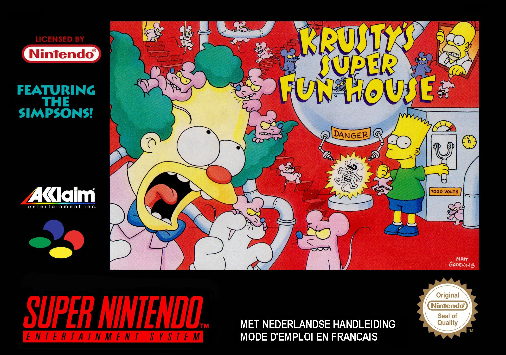 | __long_description | Krusty's Fun House (or Krusty's Super Fun House) is a puzzle game in which Krusty the Clown, of The Simpsons fame, is trying to eradicate all the rodents in his titular fun house. The goal is to convince the rats to march towards the machines that will eliminate them (staffed by Bart and Homer Simpson, as well as Krusty Show characters Sideshow Mel and Corporal Punishment) by using objects found in the vicinity. Like the Lemmings from the series of the same name, the rats will simply follow a set of rules defined by their programming and the player can use this to anticipate their actions and plan accordingly in order to trap them.
