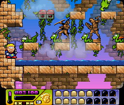 Join Magic Boy as he attempts to become a master wizard, and he does this by shooting enemies, putting them in a bag, and throwing them away. He also must get through four areas: Sand Land, Wet World, Plastic Place, and Future Zone. There are also several power-ups that help him on his quest.