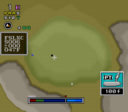 The game is a traditional golf sim in that it depicts the action from behind the golfer and uses a sliding power meter to indicate the strength of the swing. The player can use the Lesson and Driving Range modes to practice their golfing before heading onto the Competition mode. The player can choose to play as Eagle (Serizawa in the Japanese version) or select between three fictional human avatars.