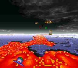 The protagonist (and his ship) can switch to a liquid metal form with the shoulder buttons. This form cannot harm nor be harmed by most enemies and can be used to slip through tubes and other small gaps. The player must be cautious while passing through each stage as a single hit will be enough to kill the protagonist.