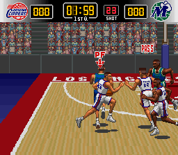 NBA Give 'N Go (JP: NBA Jikkyou Basket: Winning Dunk - ) is a basketball game from Konami that was first released in Japan and soon localized to North America and Europe. It is a reworking of Konami's competitive Arcade basketball game Run and Gun that now includes the NBA license. Players from the 1994-1995 season are included, which omits Michael Jordan due to his temporary retirement at the time. Neither Charles Barkley nor Shaquille O'Neal appear in the game either due to licensing issues. (This was not uncommon at the time; NBA Live 96 did not include Barkley or Jordan either, though they could be automatically generated in the player creator of that game; home ports of NBA Jam did not include Barkley, either.) The Japanese and English versions have different localized voice commentary.
