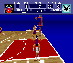 Utilizing the platform's Mode 7 technology, NCAA Basketball is the first basketball game to be presented in a dynamic 3D perspective. The game's camera follows the ball (and the athlete controlling it) while focusing on the goal basket. This technique was also used in the studio's later sports games NHL Stanley Cup and Tony Meola's Sidekicks Soccer.