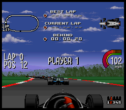 The game uses a first-person cockpit perspective for its races, and sprite scaling for the actual racing. The driving action is depicted on the bottom half of the screen, while the top half is taken up by a HUD used to display information such as the car's status, location on the track and the player's lap times. The player can choose to run a qualifying lap before starting a course, and may also practice the course to their heart's content. |