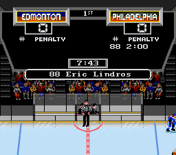 Aside from the licenses, the gameplay for this edition sees for the first time the inclusion of the devastating one-timer shot, but to keep forwards (literally) in check, defenders also feature harder body checks, with new animations. For an additional challenge, players can also choose to control the goalkeeper manually. A popular feature in previous editions, fighting is completely removed from the game. Game modes include exhibition games (or "regular season" in-game), playoffs (best of one or best of seven) and an all new shoot-out mode. The main options remain basically the same couple since the establishment of the series - period length (5, 10 or 20 minutes), line changes (off, manual or the new automatic mode) and penalties (off, on, on but no offsides). |