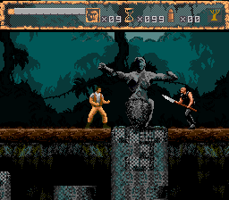 No Escape is a sci-fi action game from Bits Laboratory and Sony Imagesoft. It is based on the 1994 No Escape movie starring Ray Liotta, Kevin Dillon and Ernie Hudson, who are all pictured on the game's box art. The player, as the movie's protagonist Robbins (Liotta's character), must first escape the feral "Outsiders" of the prison island of Absolom and then ascertain a way off the island in spite of the number of gunships and attack helicopters that sit nearby in case of an escape.