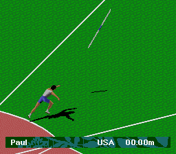 The throwing events (discus and javelin) work in the same fashion as the jumping events, although trickier to pull, as the setting of the angle must be followed by a timely release. Each player is entitled to three throws, the top eight allowed three more attempts.