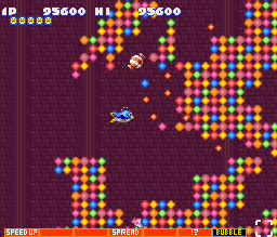 This game is actually the second Parodius in the series: the first was exclusive to the Japanese home computer MSX and was named Parodius: Tako wa Chikyuu o Sukuu ("Parodius: The Octopus Saves the Earth").