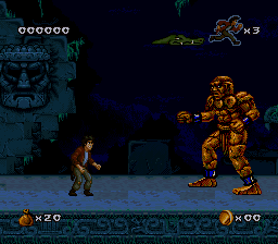 Pitfall: The Mayan Adventure is a 2D side-scrolling platformer developed and published by Activision for the Super Nintendo Entertainment System (in conjunction with Redline Games) and Sega Genesis in late 1994. A sequel and re-imagining of the 1982 Atari 2600 game Pitfall!, The Mayan Adventure stars Harry Jr., son of Pitfall Harry (the protagonist from the original game). When the elder Harry is captured off-screen by the dreaded warrior spirit Zakelua, it's up to the younger Harry to journey through the Mayan ruins to search for him. The game is known for its smooth animation (as one of the final projects of animation studio Kroyer Films, best known for the 1992 film FernGully: The Last Rainforest) and soundtrack by Soundelux Media Labs. It also contains numerous references to the original game, including a playable version as a hidden easter egg.