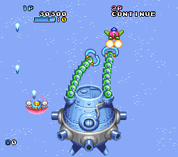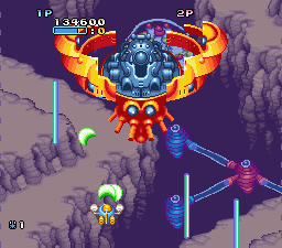 A top-down shoot 'em up. The sixth game in the Twinbee series, it is the first to be released on the SNES as well as the first to be released in Europe.