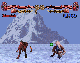 Giant beasts from different parts of the post-apocalyptic world fight each other for global domination in this violent 2D fighting game from Atari.