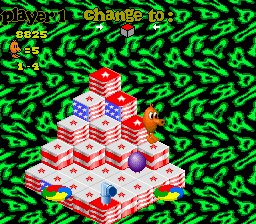 A SNES-only sequel to Gottlieb's classic Arcade game QBert. QBert 3 features the same color-switching gameplay, but with more worlds and enemies to discover.
