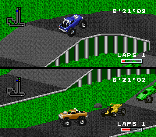 A Silicon & Synapse-developed action-racing game. As the precursor to Rock 'N Roll Racing, players can attack other racers to stall their advance, and earn money to buy and modify their cars.