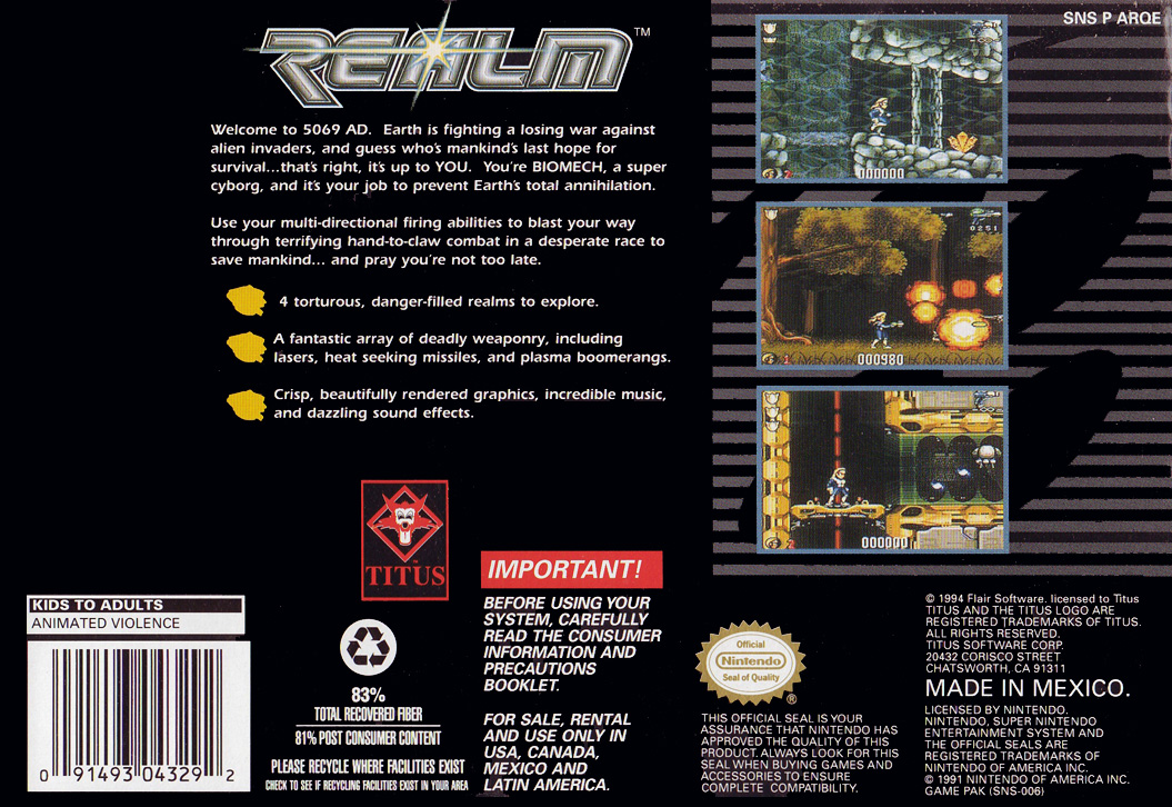 | description | A young cyborg known as the Biomech must save the remainder of humanity from robotic forces in the distant future. A platformer/shooter for the SNES, released late in the console's lifespan. |