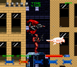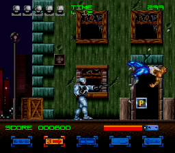 RoboCop 3 is a side-scrolling platform shooter. You get missions (such as rescuing your colleagues who are being kept hostages), which are divided into several smaller levels. The levels usually consist of several platforms, and are heavily populated by enemies who shoot at you. You can gather special repair kits, which will be used to restore your health after you've completed a level. "RoboCop 3" is more of a shooter than its predecessors, having more and tougher enemies.