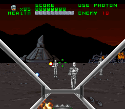 In the near future, the worlds of RoboCop and The Terminator merge into a single reality. RoboCop is placed in charge with saving mankind by destroying the Skynet super computer and preventing a possible future where machines reign supreme. The player, as RoboCop, must traverse 10 levels of action, fighting against thugs and machines alike, all while utilizing a combination of pistols, laser guns, bazookas and even the deadly ED-209 Gatling gun. The player can destroy Skynet and save the world. The game was released for Sega Genesis, Super Nintendo, Sega Master System, Game Boy, and Game Gear. An NES version was developed but never officially released.