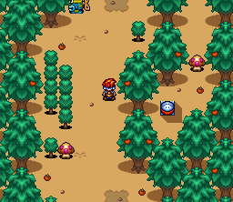 Robotrek is a fantasy RPG with sci-fi and steampunk elements. Players take the role of Akihabara's son, living in his lab at Rococo. The majority of the game is an overhead view, traveling through areas, talking to people and using items. Early on in the game, the player will learn how to create a robot in the laboratory and will use this this robot in a side-view battle mode to combat monsters and gain experience. The robots can be upgraded and equipped with different types of weapons, both found and invented. The player can have a total of three different robots to choose to send to battle, which allows customization strategies for certain situations and enemies.