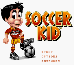 The title screen for most versions of Soccer Kid would allow the player to change the colors on the uniform Soccer Kid wears in-game to closely match their supported team. For the Super Nintendo version, the player could cycle through shirt and short colors with the shoulder buttons.