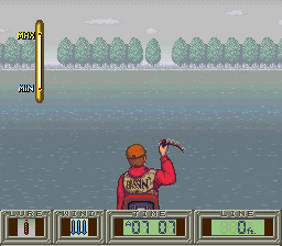 There are also attributes the player can have, Technique and Strength, that can be upgraded by catching more bass and progress can be kept through a password feature.