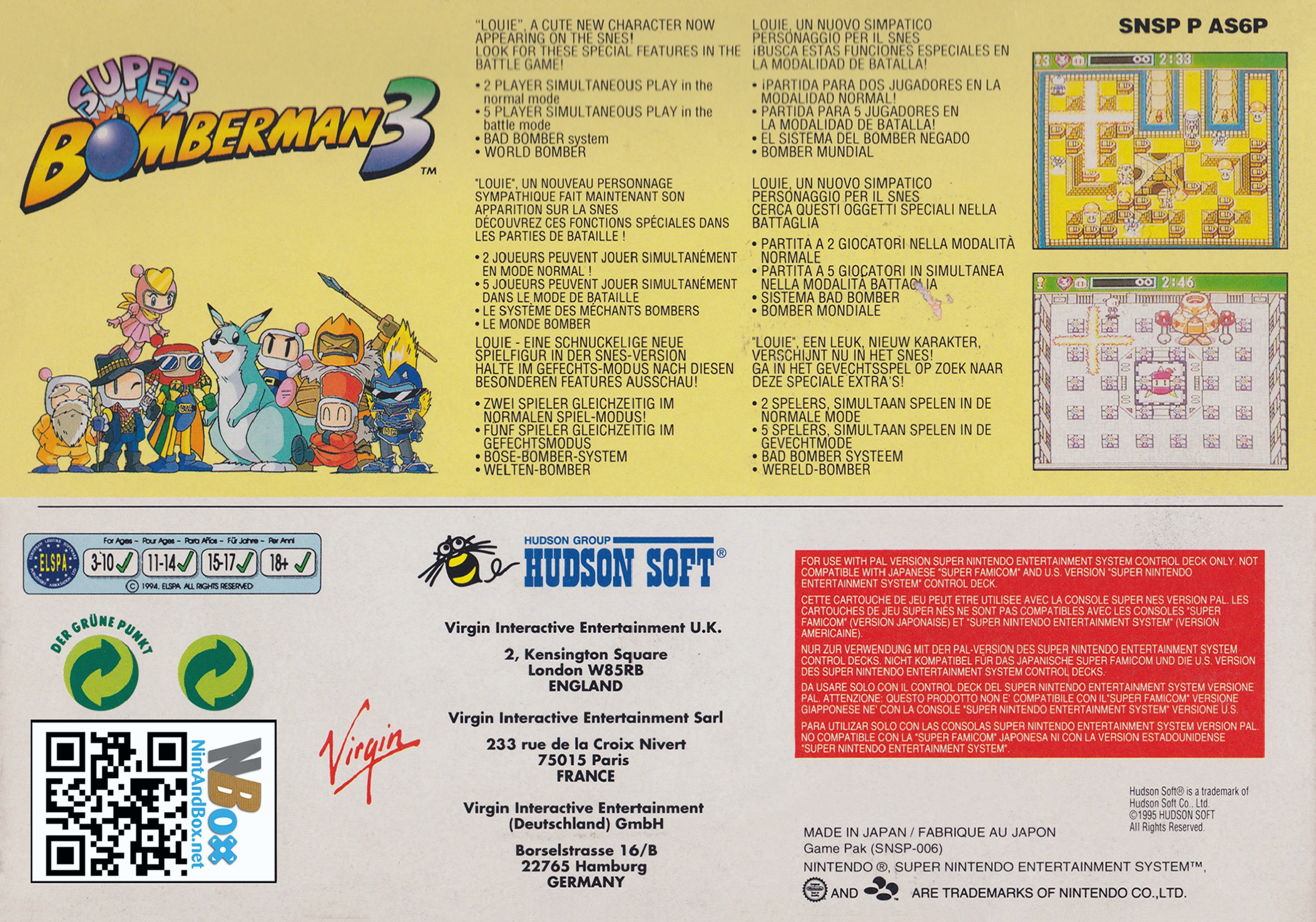 | description | The third entry in the Super Bomberman series on the Super Nintendo and the first Bomberman game to have 5 player support. |