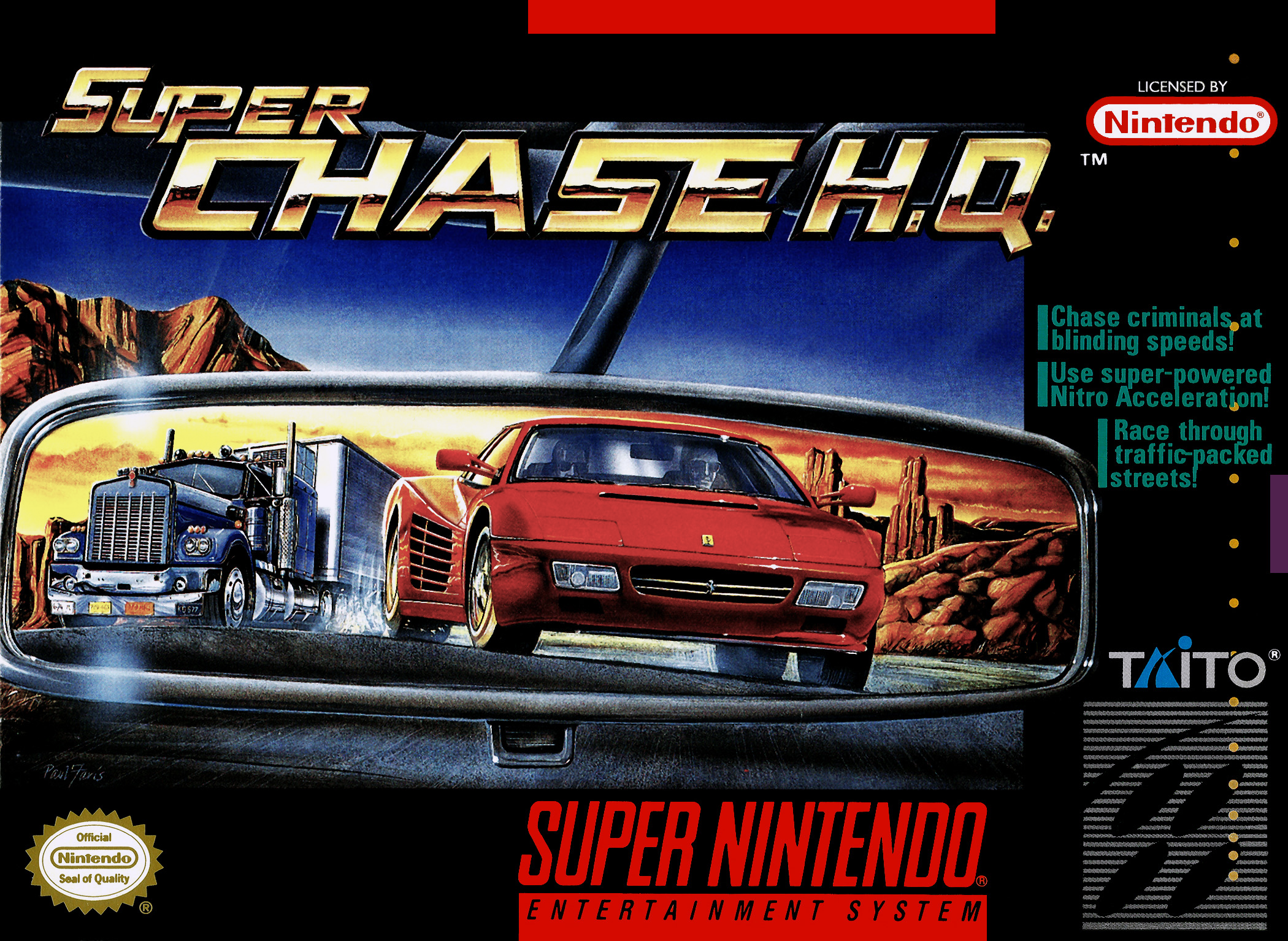| description | A car combat game for the arcade and Super Nintendo platforms, part of Taito's Chase HQ series. The goal is to drive forward until reaching the criminal, and defeat them by repeatedly ramming into the back of their car. |