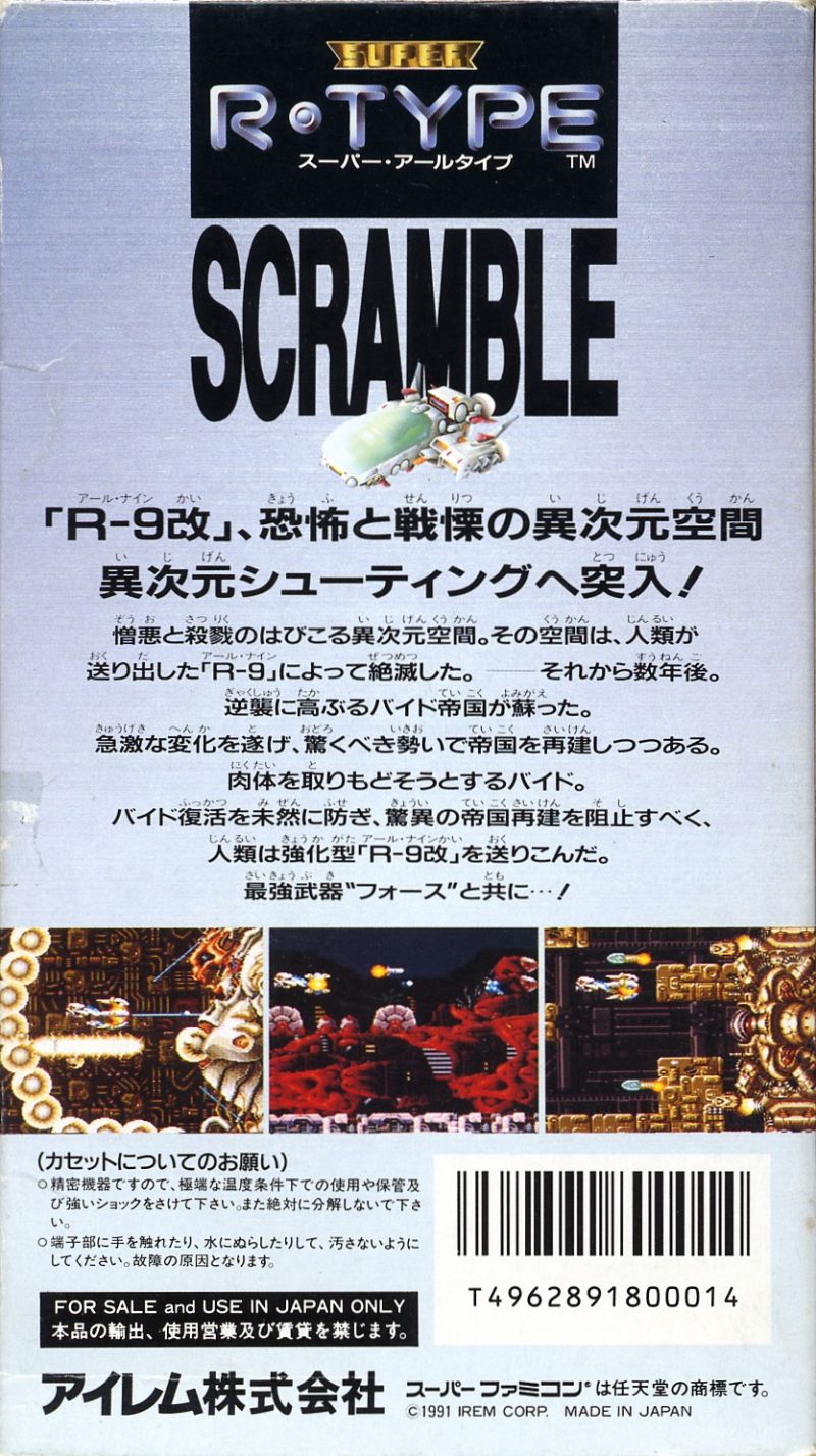| description | Irem's Arcade hit shoot 'em up R-Type made its debut on the Super Nintendo Entertainment System as a launch title. |