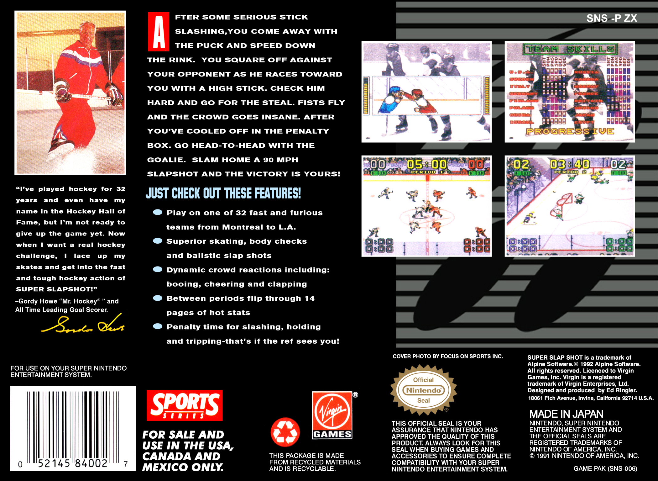 Super Slap Shot was published in Japan by Altron and the US by Virgin Interactive. |