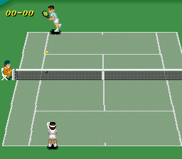 Super Tennis, released in 1991 in Japan and North America and on June 1992 in Europe, is a tennis game exclusive to the SNES (games of the same name exist on the MSX and Sega Master System, but are only similar in name and are otherwise completely different). The biggest feature is its Circuit mode, in which players partake in a tennis season with the objective of finishing with the most ranking points and thus as number one in the world. The year consists of four grand slams and four smaller tournaments, and each takes place on one of the three typical surfaces: hard, grass, and clay. The surfaces, like in real life, vary in bounce and speed. The game also includes the option to play exhibition matches, either singles or doubles, as well as twenty different characters of varying stats and strengths. For example, Phil is a strong serve-and-volleyer, but struggles during baseline rallies, while John's speed and consistent groundstrokes make him a fine baseline player.