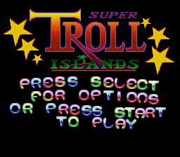 Super Troll Islands is a platformer developed by Millennium Interactive and published by American Softworks Corporation for the Super Nintendo Entertainment System. It features Troll dolls: wild-haired toys based on mischievous creatures of Danish/Scandinavian folklore that were invented in 1959 and became a recurring fad in the US and Europe in the following decades.
