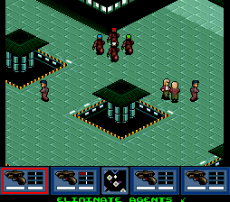Syndicate for Nintendo and Sega systems adapts the computer original for the capabilities of the consoles. While it follows the same gameplay template, it is redesigned in a much more cartoony style, has multiple differences in gameplay and controls and features completely new levels.