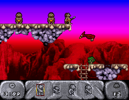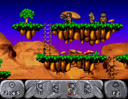 The gameplay of The Humans has similarities to Lode Runner and Lemmings. Your job in this action puzzler is to help prehistoric man to evolve by helping them discover tools, the wheel, weapons, or even fire. Each level in the game will have a given task to help in this, and you are allotted a number of characters who must accomplish the task. The player can switch from person to person while moving the characters around each scrolling puzzle, and teamwork is essential to success.