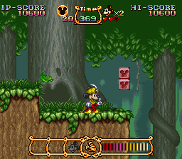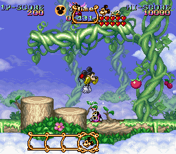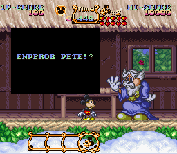 As one of several collaborations between Capcom and Disney, the game stars world-famous Disney mascot Mickey Mouse, who must use the power of three magical costumes to rescue his dog Pluto from the clutches of the evil Emperor Pete.